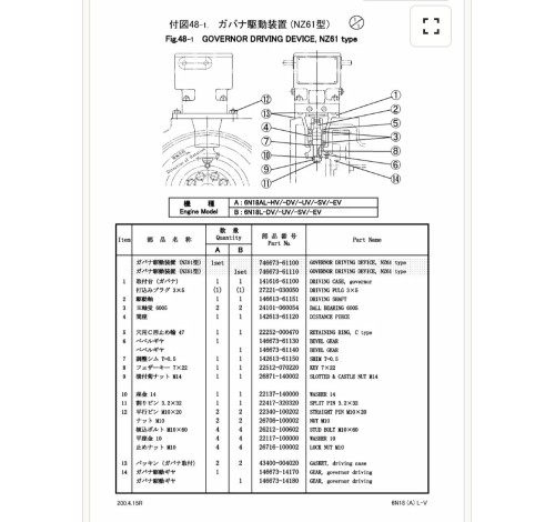 YANMAR ENGINE N18 GOVERNOR DRIVING DEVICE GOVERNOR TYPE NZ61 P/n. 746673-611100